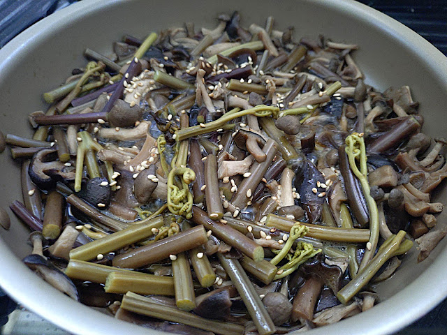 いつもはスープのダシ替わりに使っていたセンボンシメジを、立派な具材として役立てるわけだ。去年のセンボンシメジは良く採れたっけなあ、と思い出しながら、がたごとと冷凍庫内をかき回し、出てきましたセンボンシメジのめんつゆ漬けブロック。キノコの解凍には30分、これは事前に用意。ゴマ油で炒めて、中華ダシ少々、水分が飛んだ段階でストップ。イオンのPBパスタソースで混ぜ合わせて、15分で出来上がり。新作パスタはこれまた美味だった。センボンシメジは晩夏から秋のキノコなので、チタケ採りのじいさんたちが引けていく頃。汗もかくけど、頑張って収穫しよう。